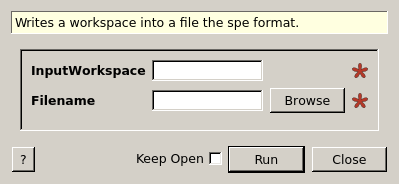 Saves the data in a workspace into a file in the ASCII ‘SPE’ format.