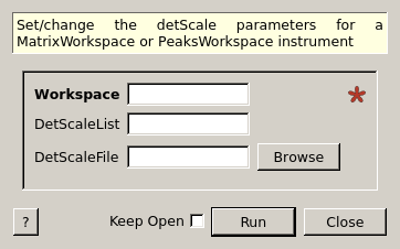 | DetScaleFile | Input | string | Optional text file with detector number and its scale on each line separated by spaces. Allowed values: [‘txt’] |