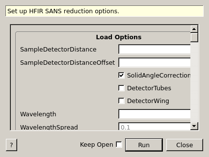 | WavelengthSpread | Input | number | 0.1 | Wavelength spread to use when loading the data file (default 0.0) |
