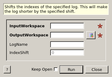 The algorithm is similar to ChangeLogTime, but instead of a defined time shift of the logs, one gets a shift in the indexes of the specified logs. This will make the log shorter by the specified shift.
