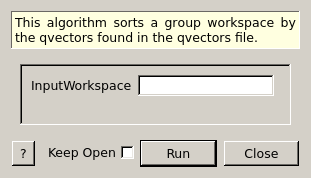 This algorithm sorts a group workspace by the qvectors found in the qvectors file. Workspaces will be transformed if the qvectors dimension is in the bins. Used for output from LoadSassena.