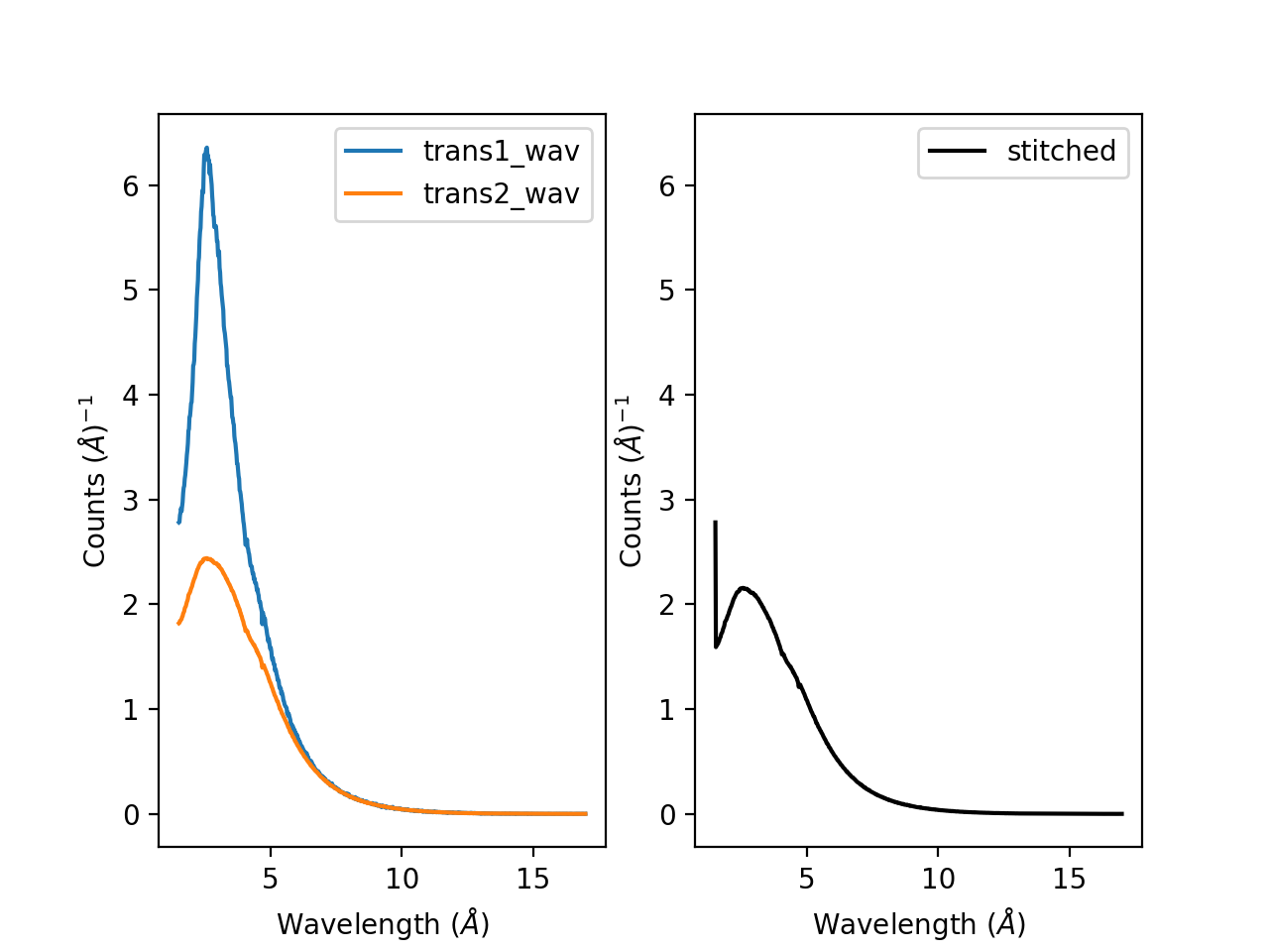stitched_wav, y = Stitch1D(trans1_wav, trans2_wav, UseManualScaleFactor=True, ManualScaleFactor=0.85)