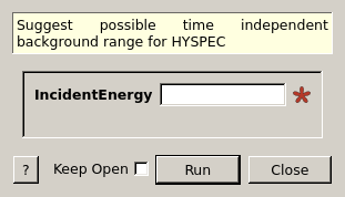 Suggest possible time independent background range for HYSPEC. It works for incident energy range from 3 to 100 meV.