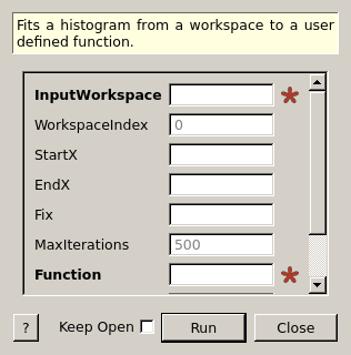 | Fix | Input | string | A list of comma separated parameter names which should be fixed in the fit | |