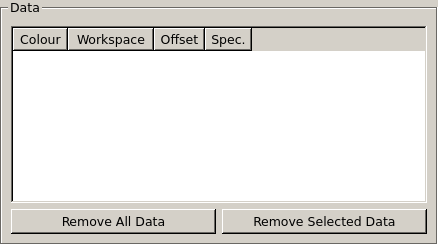 The data table shows a list of the current data shown on the plot including the workspace name and currently plotted workspace index. This also allows the curve colour to be changed manually.