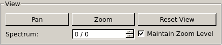The view section contains a set of tools for manipulating the plot and selecting spectra to plot via the Spectrum spin box, this is shown as the current workspace index out of the maximum workspace index after the offsets are applied.