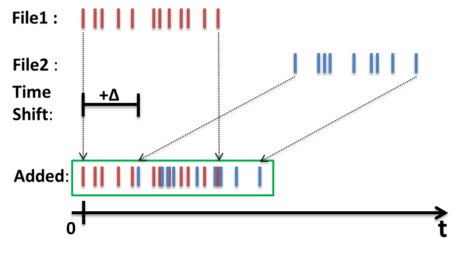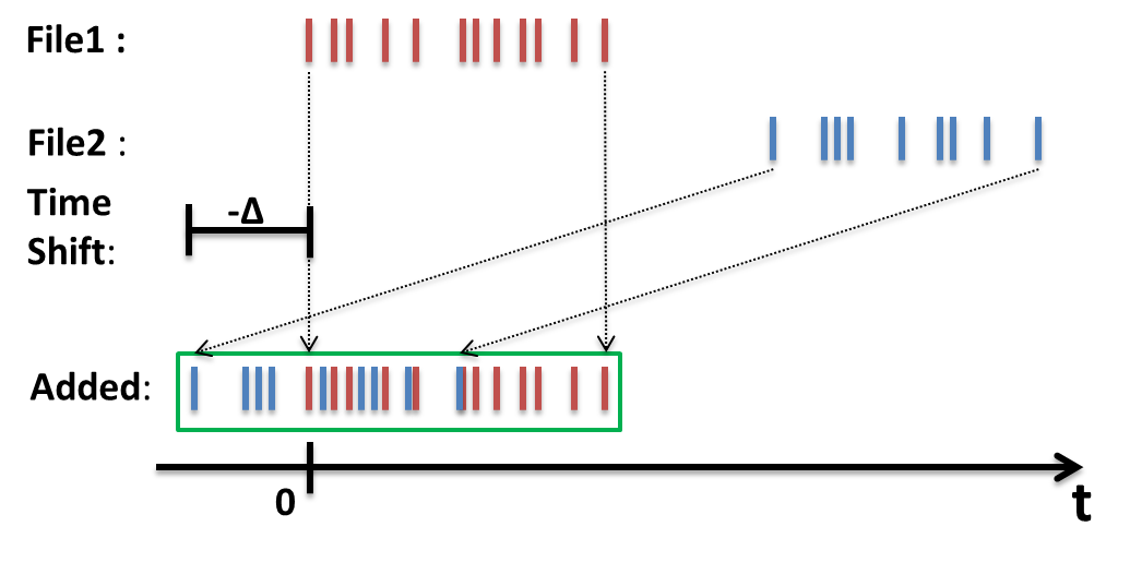 Additional time shifts are specified as a comma separated list of numbers where each shift is the time to shift by in seconds. The list should contain exactly N-1 entries where N is the number of runs to be summed.