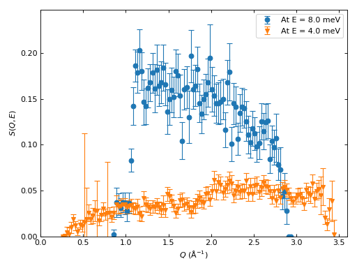 fig, axes, cuts = dt.plotconstQ('SofQW', [Q1, Q2], dQ)