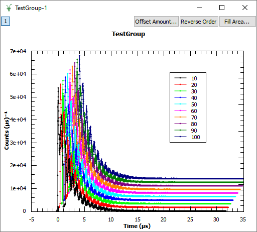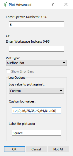 Note you have produced a WorkspaceGroup TestGroup that contains 10 workspaces with sample log values. Advanced plotting is used to compare multiple workspaces.