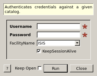 | KeepSessionAlive | Input | boolean | True | Keeps the session of the catalog alive if login was successful. |