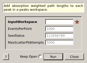 This algorithm uses the Monte Carlo simulation (originally designed for calculating absorption corrections) to calculate the absorption weighted path length for each peak in a peaks workspace. The absorption weighted path length is used to calculate extinction corrections in single crystal diffraction.