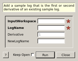 AddLogDerivative(ws,"MyLog",derivative=1,NewLogName="Derivative1")