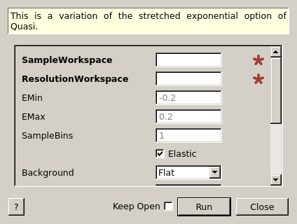 ResolutionWorkspace Input MatrixWorkspace Mandatory Name of the resolution input Workspace