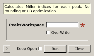 OverWrite Input boolean False Overwrite existing miller indices as well as empty ones.