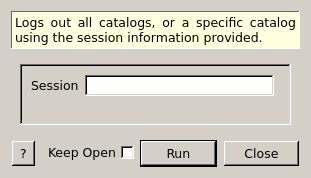 Session Input string   The session information of the catalog to log out. If none provided then all catalogs are logged out.