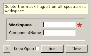 | Workspace | InOut | MatrixWorkspace | Mandatory | Workspace to clear the mask flag of. |