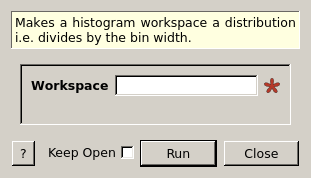Makes a histogram workspace a distribution i.e. divides by the bin width.