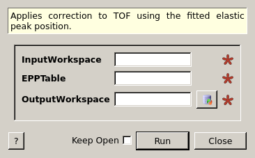 | EPPTable | Input | TableWorkspace | Mandatory | Input EPP table. May be produced by FindEPP algorithm. |