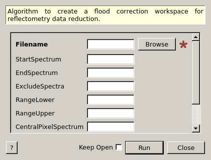 | OutputWorkspace | Output | MatrixWorkspace | Mandatory | The flood correction workspace. |