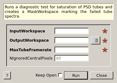 Runs a diagnostic test for saturation of PSD tubes and creates a MaskWorkspace marking the failed tube spectra.