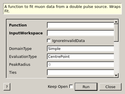 This algorithm is is designed to analyse double pulse Muon data. It fits two copies of the input function seperated by a time offset. The function fitted is of the form