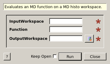 | InputWorkspace | Input | IMDHistoWorkspace | Mandatory | An input workspace that provides dimensions for the output. |