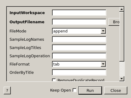 InputWorkspace Input MatrixWorkspace Mandatory Input workspace containing the sample log information.