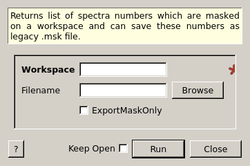 | ExportMaskOnly | Input | boolean | False | If true, algorithm will not save mask in a fileand only returns the list containing numbers of masked spectra. |