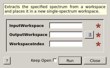 WorkspaceIndex Input number Mandatory The workspace index number of the spectrum to extract.