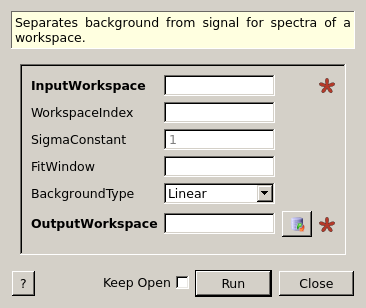 | WorkspaceIndex | Input | number | Optional | workspace indices to have peak and background separated. No default is taken. |