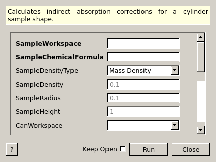 | CorrectionsWorkspace | Output | WorkspaceGroup | The corrections workspace for scattering and absorptions in sample. |