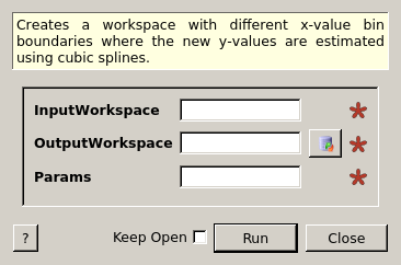 Creates a workspace with different x-value bin boundaries where the new y-values are estimated using cubic splines.
