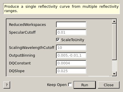 ScaleToUnity Input boolean True If true, the reflectivity under the Q given cutoff will be scaled to 1