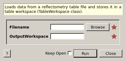 Loads data from a reflectometry table file and stores it in a table workspace (TableWorkspace class).
