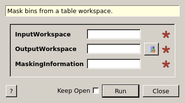 | InputWorkspace | Input | MatrixWorkspace | Mandatory | Input Workspace to mask bins. |