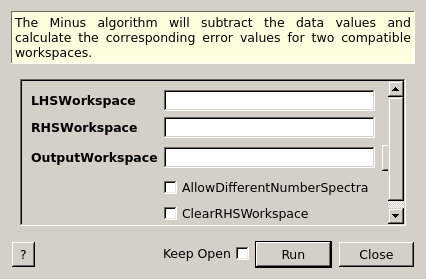 The Minus algorithm will subtract the data values and calculate the corresponding error values for two compatible workspaces.