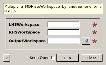 Multiply two MDHistoWorkspace’s or a MDHistoWorkspace and a scalar.