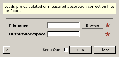 Loads an existing file of pre-calculated or measured absorption coefficients for the PEARL instrument.