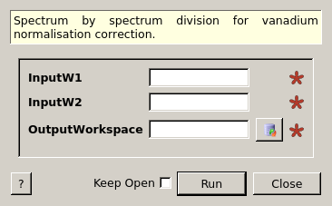 InputW2 Input MatrixWorkspace Mandatory Name of the Vanadium workspace.