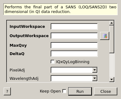 | IQxQyLogBinning | Input | boolean | False | I(qx,qy) log binning when binning is not specified. |