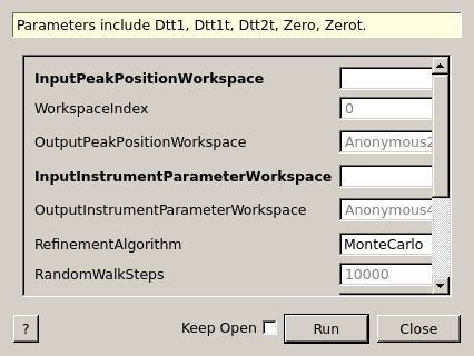 RefinementAlgorithm Input string MonteCarlo Algorithm to refine the instrument parameters. Allowed values: [‘OneStepFit’, ‘MonteCarlo’]