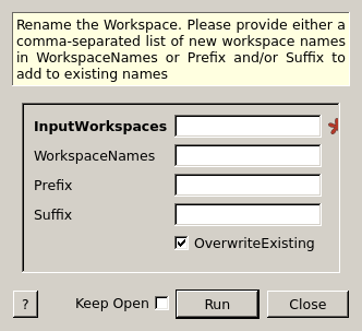 | WorkspaceNames | Input | str list | New Names of the Workspaces | |