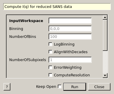 | LogBinning | Input | boolean | False | Produce log binning in Q when true and binning wasn’t supplied |