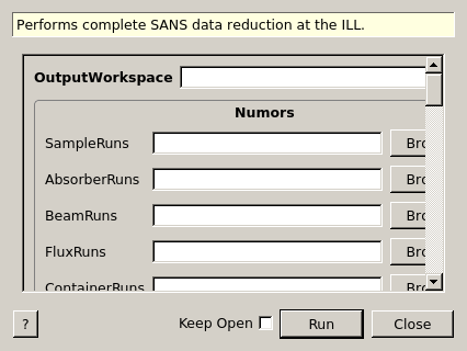 | TransmissionBeamRuns | Input | list of str lists | Empty beam run(s) for transmission. Allowed values: [‘nxs’] | |