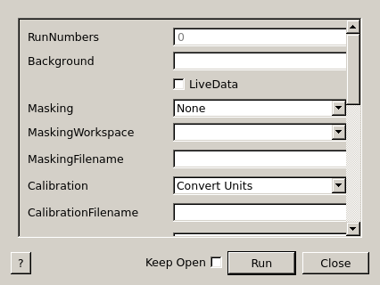 | LiveData | Input | boolean | False | Read live data - requires a saved run in the current IPTS with the same Instrument configuration as the live run |