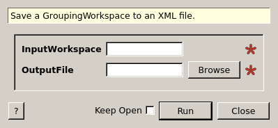 | InputWorkspace | Input | GroupingWorkspace | Mandatory | GroupingWorkspace to output to XML file (GroupingWorkspace) |