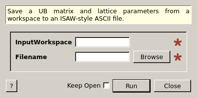 This saves a workspace’s UB matrix to an ISAW-style UB matrix text file.