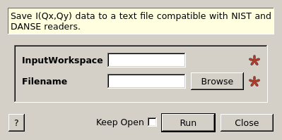 Qxy rebins a 2D workspace in units of wavelength into 2D Q. It also normalises to the solid angle of each detector pixel. The result is stored in a 2D workspace with two numeric axes, both in units of Q. SaveNISTDAT can then save the output of Qxy to an ASCII file in a form that can be read by NIST software.