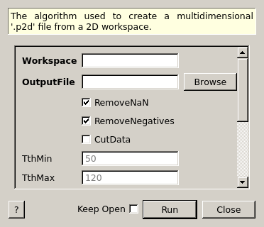 This algorithm can be used to create a powder pattern 2d (“.p2d”) output file as useable for