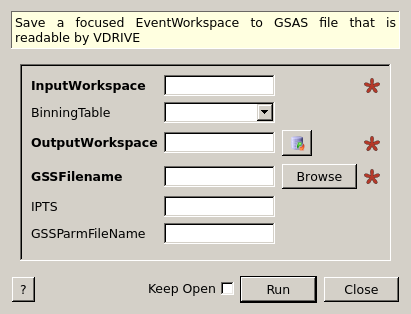 GSSFilename Input string Mandatory Name of the output GSAS file. Allowed extensions: [‘.gda’]